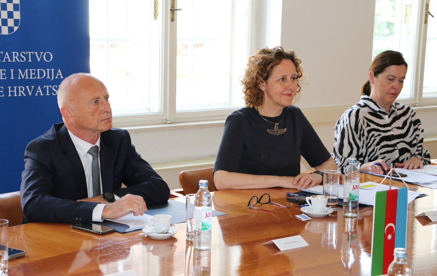 24. lipnja 2025. - Ministrica kulture i medija dr. sc. Nine Obuljen Koržinek sastala se s ministrom kulture Republike Azerbajdžan Adilom Karimlijem koji sa svojim suradnicima boravi u Hrvatskoj. Danas su u Ministarstvu kulture i medija, na bilateralnom sastanku, ministri iskazali spremnost za osnaživanje i pojačanu dinamiku razmjene u područjima izvedbenih i vizualnih umjetnosti, audiovizualnih te književnih i izdavačkih djelatnosti. Posebno je naglašena važnost poticanja prevođenja nacionalnih književnosti na hrvatski i azerbajdžanski jezik.