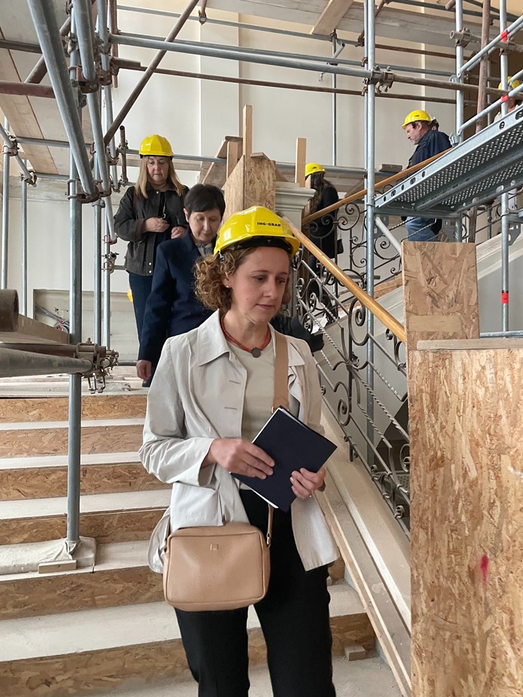 23. rujan 2025. - Uznapredovala obnova na Muzeju Mimari i Umjetničkom paviljonu u Zagrebu, bila je povod da njihova gradilišta danas posjeti ministrica kulture i medija dr.sc. Nina Obuljen Koržinek sa suradnicima. S konzervatoricama Marijanom Sironić i Majom Gorianc Čumbrek iz Gradskog zavoda za zaštitu spomenika kulture i prirode Grada Zagreba, projektantom Željkom Pekovićem, predstavnicima izvođača radova te ravnateljicama Tajanom Pleše i Irenom Bekić pregledali su dosadašnja postignuća obnove.